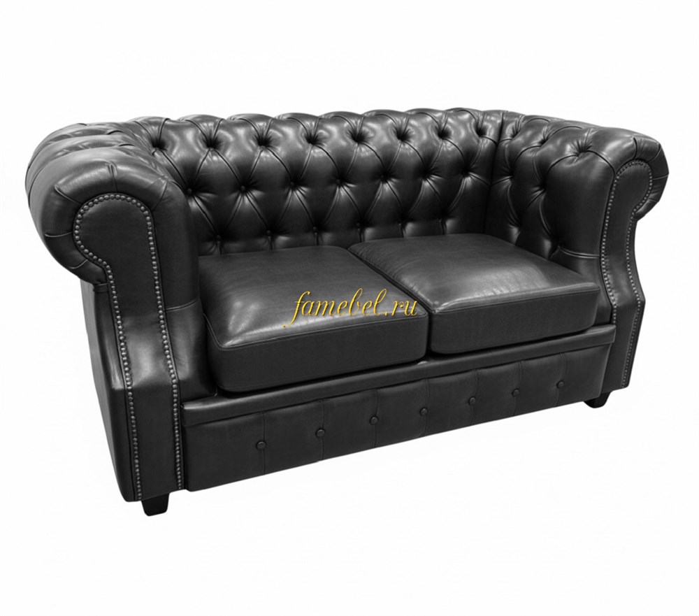 Диван Честер Лофт 2-х местный, экокожа чёрный