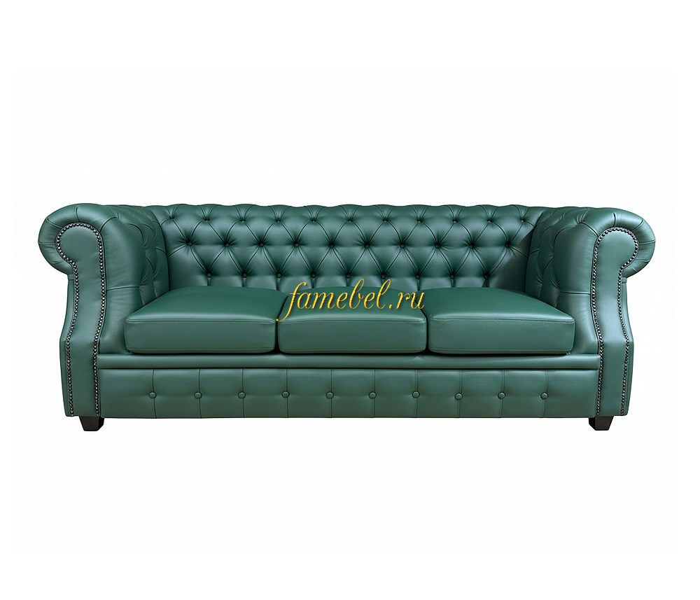Диван Честер лофт 3-х местный, экокожа зелёный