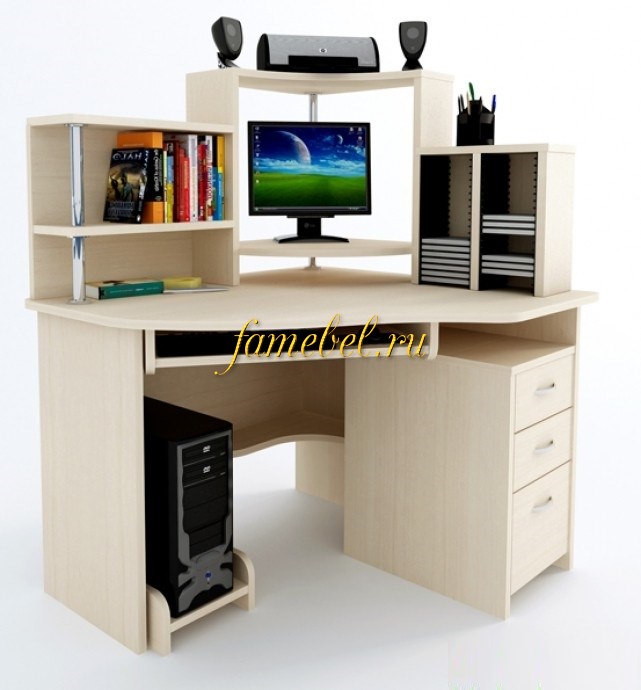Угловой компьютерный стол Компасс С215 СД. Исполнение левый, правый. Современная модель с надстройкой и тремя ящиками. Шариковые направляющие 100% выдвижения. Материал: ЛДСП, цвет по выбору.